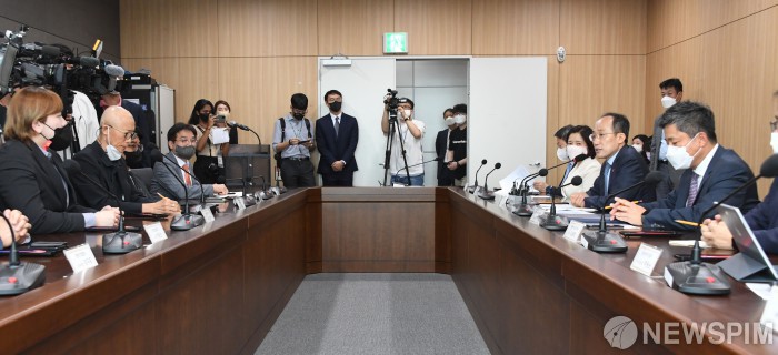 [서울=뉴스핌]추경호 부총리 겸 기획재정부 장관이 3일 경기도 판교 제2테크노벨리 기업지원허브 창업존을 방문,벤처기업계와 유관기관과의 간담회에서 모두발언을 하고 있다.[사진=기획재정부] 2022.06.03 photo@newspim.com