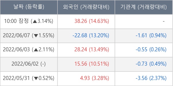 [표] 외국인ㆍ기관 순매매량 (단위 만주)