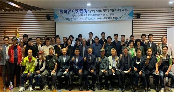 | 평택항 관련 토론회 행사 참가자들이 기념촬영을 하고 있다[사진=평택대] 2022.06.16 krg0404@newspim.com |