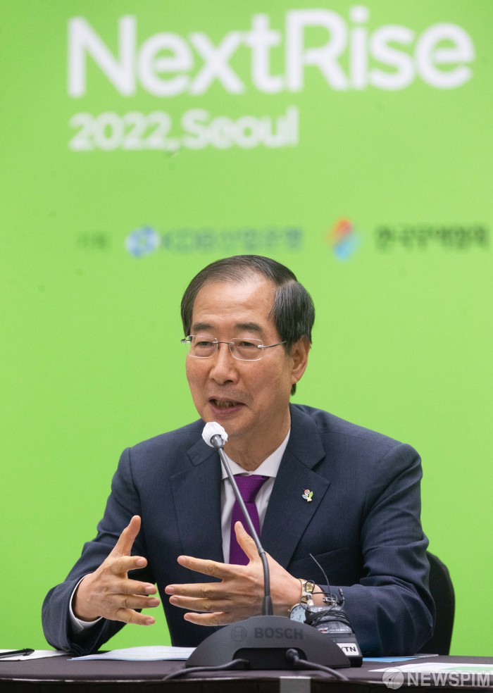 [서울=뉴스핌] 윤창빈 기자 = 한덕수 국무총리가 17일 오전 서울 강남구 코엑스에서 열린 투자에로⋅규제개선 벤처⋅스타트업 현장 간담회에서 모두발언을 하고 있다. 2022.06.17 pangbin@newspim.com