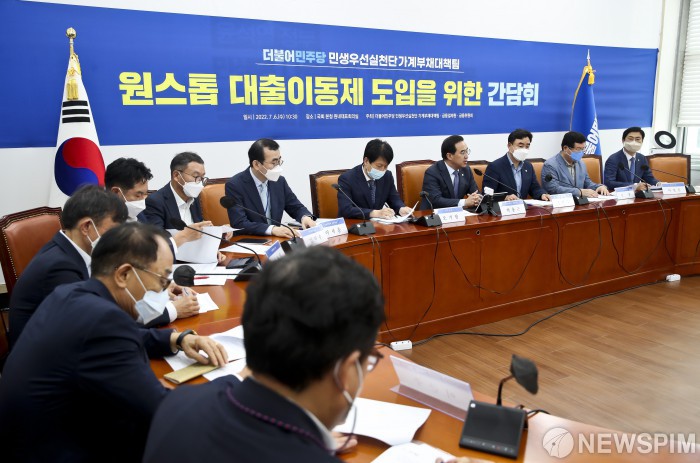 [서울=뉴스핌] 최상수 기자 = 더불어민주당 박홍근 원내대표가 6일 오전 서울 여의도 국회 원내대표회의실에서 열린 원스톱 대출이동제 도입을 위한 간담회에서 발언하고 있다. 2022.07.06 kilroy023@newspim.com