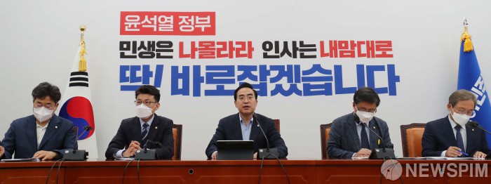 [서울=뉴스핌] 최상수 기자 = 박홍근 더불어민주당 원내대표가 7일 서울 여의도 국회에서 열린 정책조정회의에서 발언하고 있다. 2022.07.07 kilroy023@newspim.com