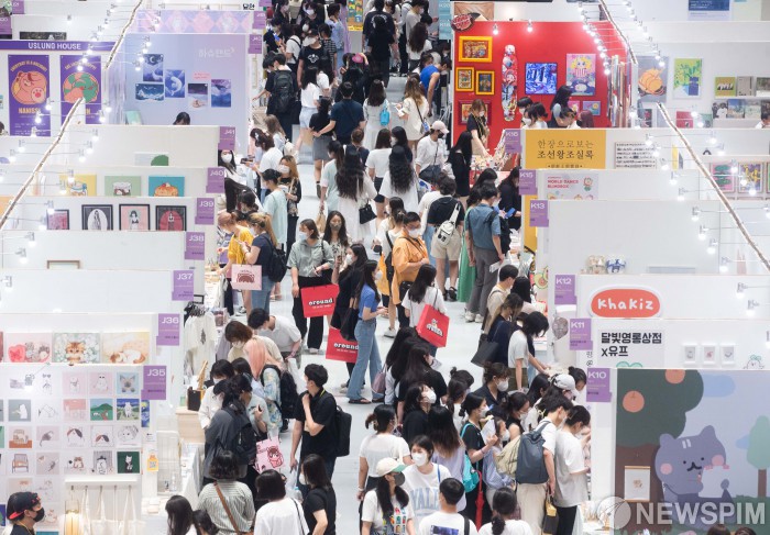 [서울=뉴스핌] 윤창빈 기자 = 7일 오후 서울 강남구 코엑스에서 열린 서울일러스트레이션페어V.13에서 관람객들이 다양한 일러스트 상품을 살펴보고 있다. 2022.07.07 pangbin@newspim.com