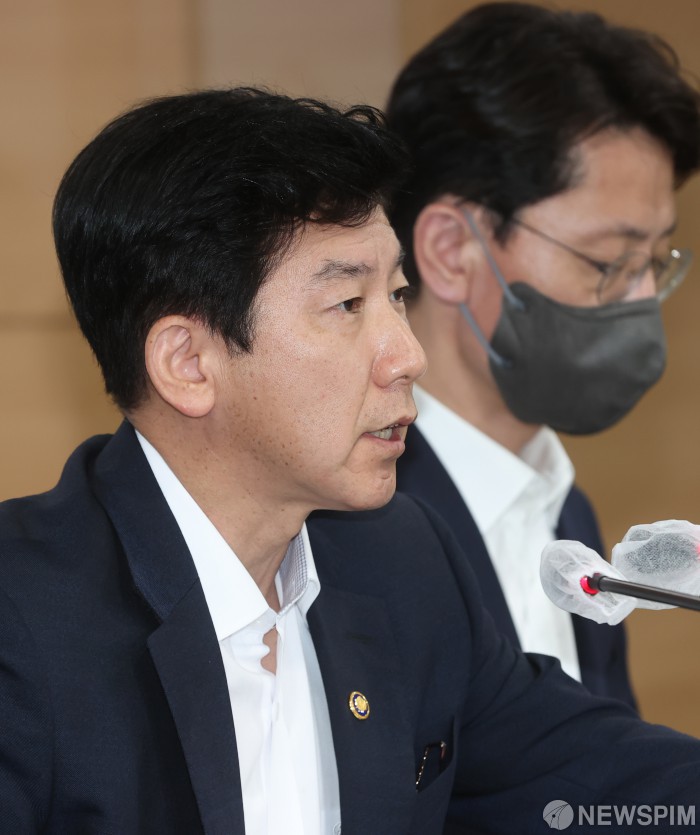 [서울=뉴스핌] 김민지 기자 = 최상대 기획재정부 제2차관이 29일 오전 서울 종로구 정부서울청사 브리핑룸에서 새정부 공공기관 혁신 가이드라인 발표를 하고 있다. 2022.07.29 kimkim@newspim.com