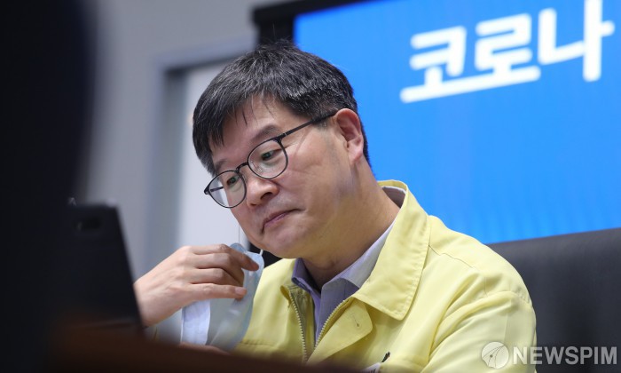 [서울=뉴스핌] 김학선 기자 = 이기일 중앙재난안전대책본부 1총괄조정관(보건복지부 제2차관)이 3일 서울 종로구 정부서울청사에서 열린 코로나19 중대본 회의에 참석해 모두발언에 앞서 마스크를 벗고 있다. 2022.08.03 yooksa@newspim.com