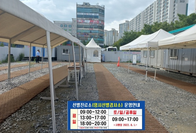 | 평택시 안중공용버스터미널 내에 설치된 임시선별검사소 모습[사진=평택시] 2022.08.03 krg0404@newspim.com |