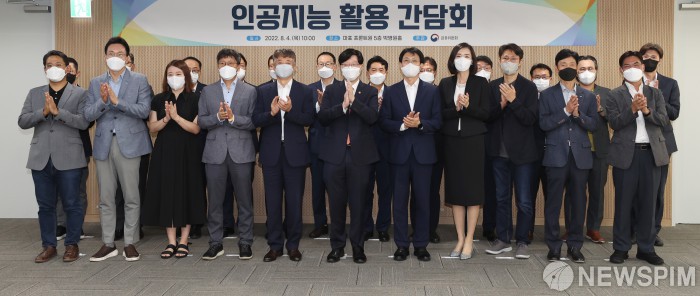 [서울=뉴스핌] 김민지 기자 = 김소영 금융위원회 부위원장(앞줄 가운데)이 4일 오전 서울 마포구 프론트원에서 열린 금융분야 인공지능 활용 활성화 간담회에서 참석자들과 기념촬영을 하고 있다. 2022.08.04 kimkim@newspim.com