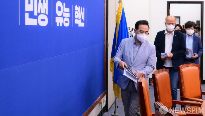 [서울=뉴스핌] 최상수 기자 = 박홍근 더불어민주당 원내대표가 8일 서울 여의도 국회에서 열린 비상대책위원회의에 참석하고 있다. (공동취재사진) 2022.08.08 photo@newspim.com