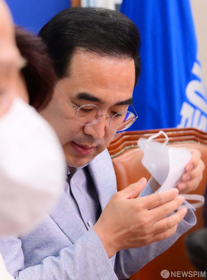 [서울=뉴스핌] 최상수 기자 = 박홍근 더불어민주당 원내대표가 8일 서울 여의도 국회에서 열린 비상대책위원회의에서 마스크를 벗고 있다. (공동취재사진) 2022.08.08 photo@newspim.com