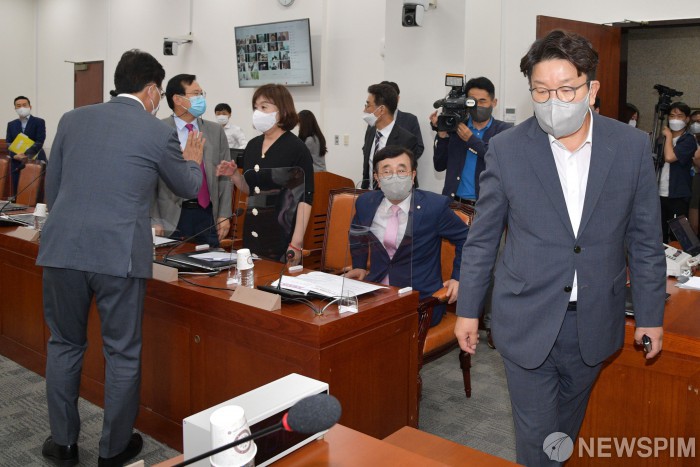 [서울=뉴스핌] 김민지 기자 = 권성동 국민의힘 당대표 직무대행 겸 원내대표가 9일 오후 서울 여의도 국회에서 열린 화상의원총회에 참석하고 있다. (공동취재사진) 2022.08.09 photo@newspim.com