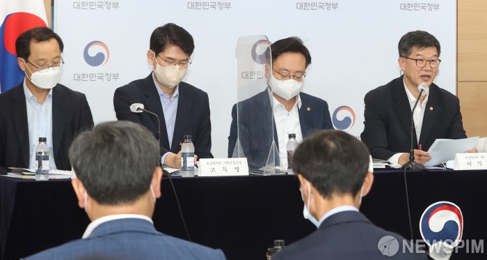 [서울=뉴스핌] 김민지 기자 = 조규홍 보건복지부 1차관과 이기일 2차관이 19일 서울 종로구 정부서울청사에서 새정부 업무보고 사전 브리핑을 하고 있다. 2022.08.19 kimkim@newspim.com