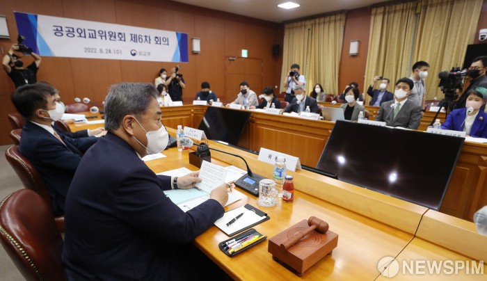 [서울=뉴스핌] 김학선 기자 = 박진 외교부 장관이 24일 서울 종로구 정부서울청사에서 열린 공공외교위원회 제6차 회의에 참석해 발언하고 있다. 2022.08.24 yooksa@newspim.com