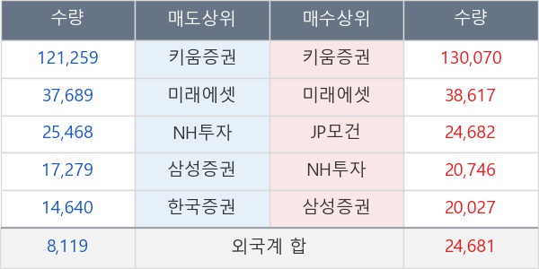 [표] 외국인ㆍ기관 순매매량 (단위 주)