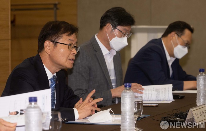 [서울=뉴스핌] 윤창빈 기자 = 이정식 고용노동부 장관이 30일 오후 서울 중구 로얄호텔서울에서 열린 조선업 원청3사 CEO 차담회에서 모두발언을 하고 있다. 2022.08.30 pangbin@newspim.com