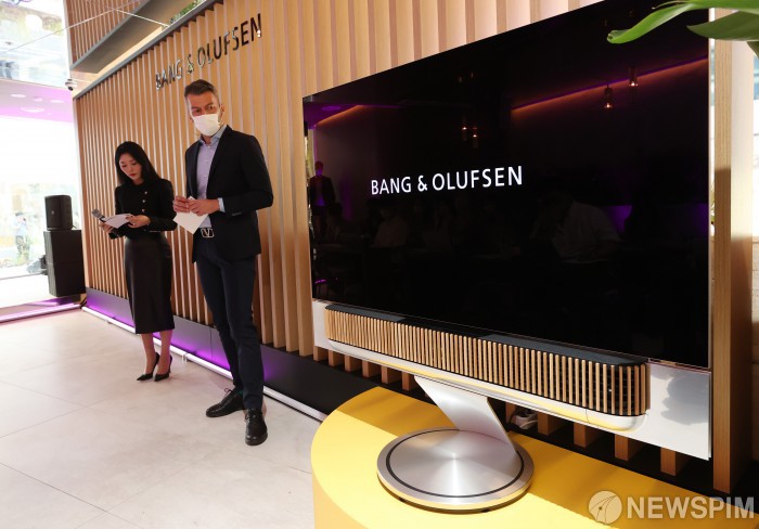 [서울=뉴스핌] 김민지 기자 = 27일 오후 서울 강남구 센트레 청담에서 여린 뱅앤올룹슨 베오사운드 시어터 출시 행사에서 스탕코 밀루쉐브(Stanko Milushev) 마켓 디렉터가 제품 소개를 하고 있다. 베오사운드 시어터는 4가지 특허의 혁신적인 음향을 자랑하는 사운드바로, 생생한 시네마틱 경험을 제공한다. 2022.09.27 kimkim@newspim.com