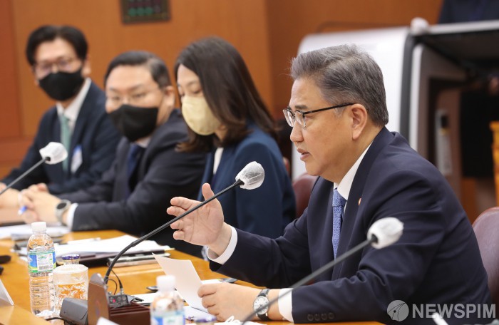 [서울=뉴스핌] 김학선 기자 = 박진 외교부 장관이 6일 서울 종로구 외교부 청사에서 열린 2022년 제2차 국제관계대사회의를 주재하며 발언하고 있다. 2022.10.06 yooksa@newspim.com