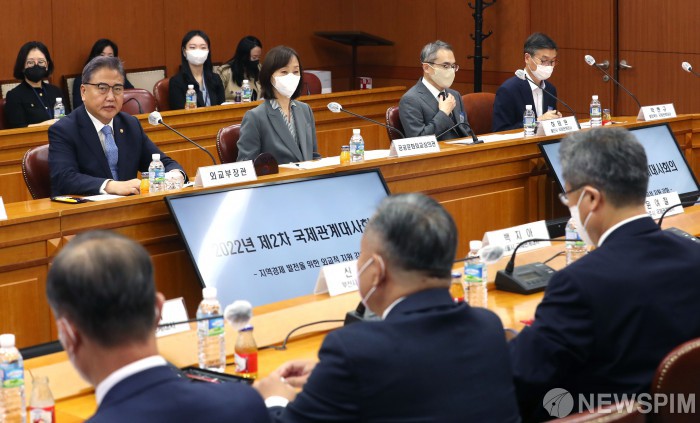 [서울=뉴스핌] 김학선 기자 = 박진 외교부 장관이 6일 서울 종로구 외교부 청사에서 열린 2022년 제2차 국제관계대사회의를 주재하며 발언하고 있다. 2022.10.06 yooksa@newspim.com
