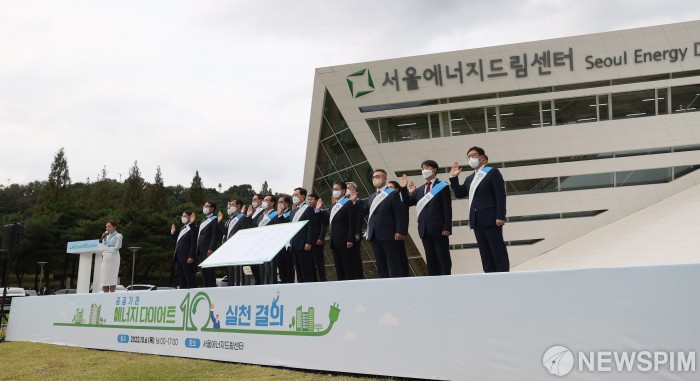 [서울=뉴스핌] 최상수 기자 = 이창양 산업통상자원부 장관이 6일 서울 마포구 서울에너지드림센터에서 열린 공공기관 에너지 다이어트 결의식에서 결의문을 낭독하고 있다. 2022.10.06 kilroy023@newspim.com