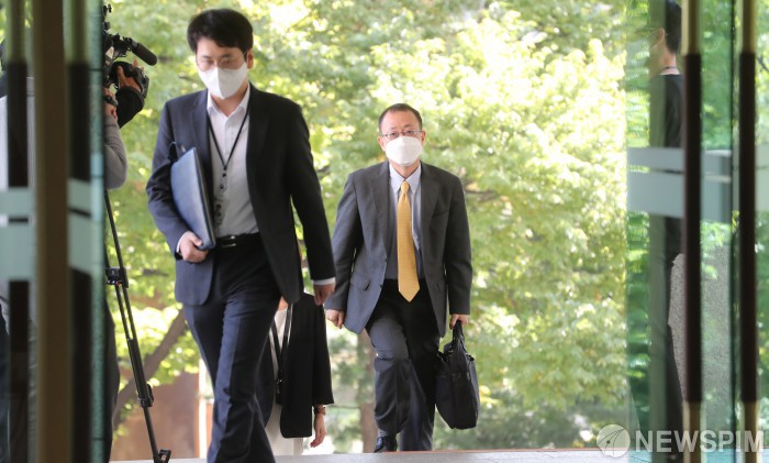 [서울=뉴스핌] 김학선 기자 = 후나코시 다케히로 일본 외무성 아시아·대양주국장이 11일 한일 국장협의를 하기 위해 서울 종로구 외교부 청사로 들어서고 있다. 2022.10.11 yooksa@newspim.com
