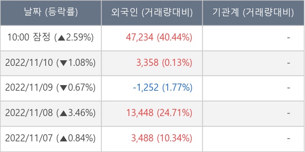 [표] 외국인ㆍ기관 순매매량 (단위 주)