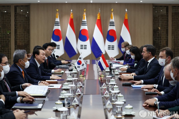 [서울=뉴스핌] 윤석열 대통령이 17일 용산 대통령실 청사에서 마크 루터 네덜란드 총리와 정상회담을 하고 있다. [사진=대통령실] 2022.11.17 photo@newspim.com
