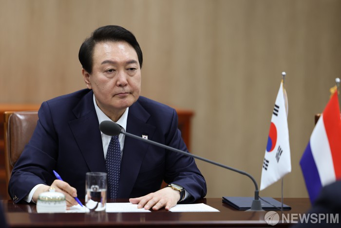 [서울=뉴스핌] 윤석열 대통령이 17일 용산 대통령실 청사에서 마크 루터 네덜란드 총리와 정상회담을 하고 있다. [사진=대통령실] 2022.11.17 photo@newspim.com