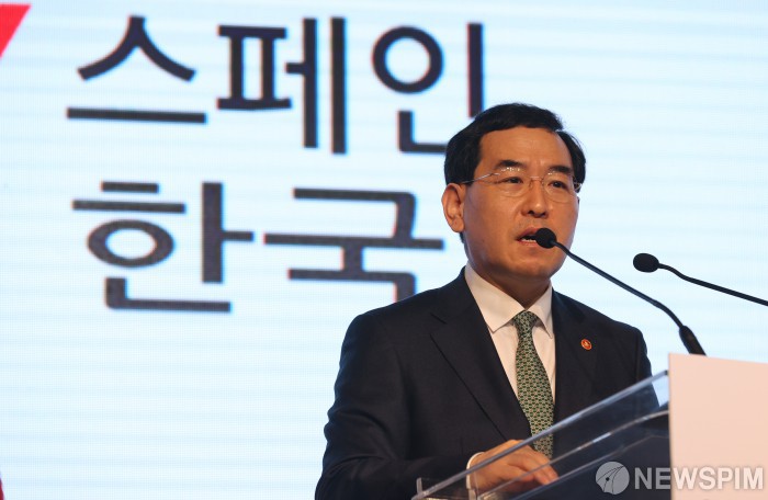 [서울=뉴스핌] 황준선 기자 = 이창양 산업통상자원부 장관이 18일 오전 서울 종로구 포시즌스 호텔에서 열린 한-스페인 비지니스 포럼에서 축사를 하고 있다. 2022.11.18 hwang@newspim.com