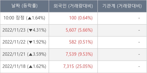 [표] 외국인ㆍ기관 순매매량 (단위 주)
