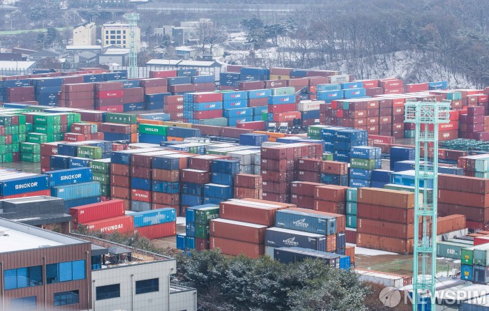 [의왕=뉴스핌] 윤창빈 기자 = 화물연대 파업 13일째인 6일 경기 의왕시 의왕ICD 제2터미널에 컨테이너들이 쌓여있다. 2022.12.06 pangbin@newspim.com