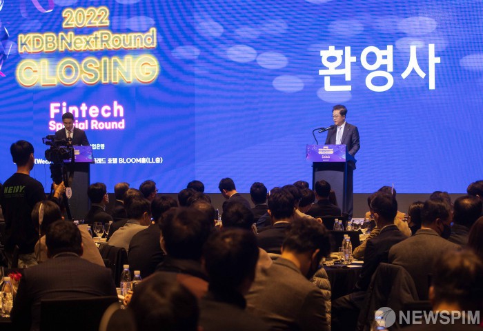[서울=뉴스핌] 윤창빈 기자 = 강석훈 KDB산업은행 회장이 7일 오전 서울 여의도 글래드 호텔에서 열린 2022 KDB 넥스트라운드 : 핀테크 스페셜 라운드에서 환영사를 하고 있다. 2022.12.07 pangbin@newspim.com
