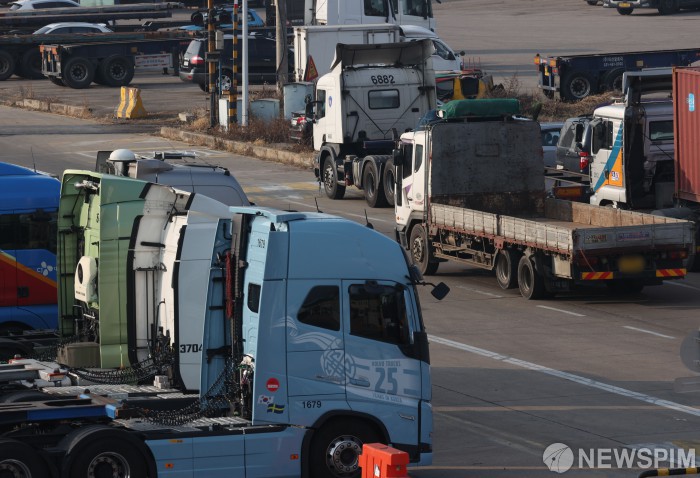 [서울=뉴스핌] 황준선 기자 = 공공운수노조 화물연대가 총파업을 철회한 9일 오후 경기도 의왕시 내륙컨테이너기지(ICD)에서 화물차들이 이동하고 있다. 2022.12.09 hwang@newspim.com