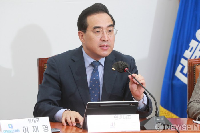 [서울=뉴스핌] 이형석 기자 = 박홍근 더불어민주당 원내대표가 12일 서울 여의도 국회에서 열린 최고위원회의에서 모두발언을 하고 있다. 2022.12.12 leehs@newspim.com