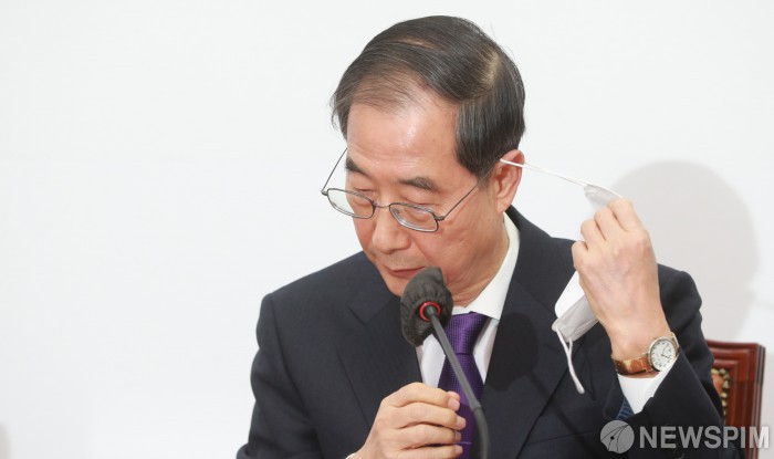 [서울=뉴스핌] 이형석 기자 = 한덕수 국무총리가 12일 서울 여의도 국회에서 이재명 더불어민주당 대표를 만나 인사말을 하기 위해 마스크를 벗고 있다. 이날 한 총리는 더불어민주당을 찾아 예산안 처리를 요청했다. 2022.12.12 leehs@newspim.com