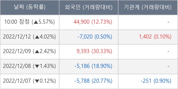 [표] 외국인ㆍ기관 순매매량 (단위 주)