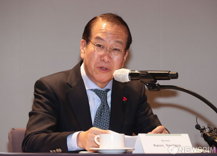 [서울=뉴스핌] 황준선 기자 = 권영세 통일부 장관이 16일 오후 서울 용산구 몬드리안 호텔에서 열린 주한대사 및 국제기구 대상 통일·대북정책 설명회에서 모두발언을 하고 있다. 2022.12.16 hwang@newspim.com