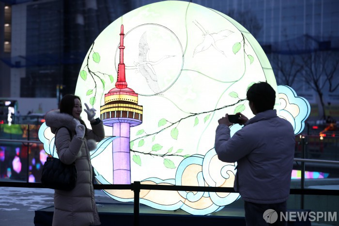 [서울=뉴스핌] 정일구 기자 = 19일 오후 서울 종로구 광화문광장 일대에서 열린 '2022 서울라이트 광화'와 '2022 서울 빛초롱' 행사를 찾은 시민들이 전시물을 관람하고 있다. 이날 개막한 '2022 서울라이트 광화'와 '2022 서울 빛초롱'은 오는 31일까지 13일간 진행되며, 매일 오후 6시부터 10시까지 관람할 수 있다. 2022.12.19 mironj19@newspim.com