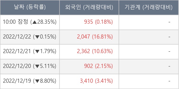 [표] 외국인ㆍ기관 순매매량 (단위 주)