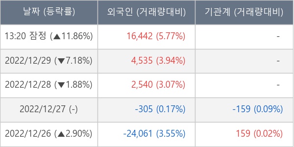 [표] 외국인ㆍ기관 순매매량 (단위 주)