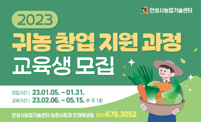 | 귀농창업지원과정 교육생 모집 안내 홍보물[사진=안성시] 2023.01.06 krg0404@newspim.com |