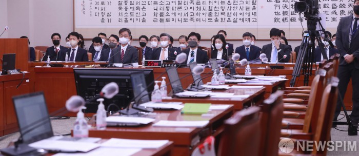[서울=뉴스핌] 이형석 기자 = 한동훈 법무부 장관이 16일 서울 여의도 국회에서 열린 법제사법위원회 전체회의에 자리하고 있다. 이날 더불어민주당은 양곡관리법개정안 제2소위 회부에 반발하며 회의장에서 퇴장했다. 2023.01.16 leehs@newspim.com