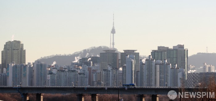 [서울=뉴스핌] 이형석 기자 = 서울 최저 기온이 영하 18도를 기록한 25일 오전 서울 여의도에서 바라본 주거지역에 난방으로 인한 수증기가 피어오르고 있다. 2023.01.25 leehs@newspim.com