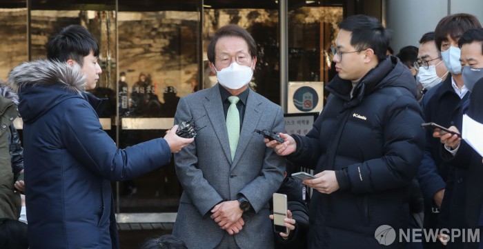 [서울=뉴스핌] 김보나 인턴기자 = 전국교직원노동조합의 요구에 따라 ‘해직 교사를 부당 채용’ 혐의로 기소된 조희연 서울시교육감이 27일 오후 서울 서초구 서울중앙지방법원에서 열린 1심 선고 공판에서 집행유예를 선고 받은 뒤 입장을 밝히고 있다. 2023.01.27 anob24@newspim.com