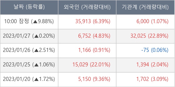 [표] 외국인ㆍ기관 순매매량 (단위 주)