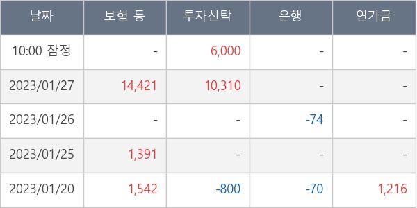 [표] 주요 기관별 순매매량 (단위 주)