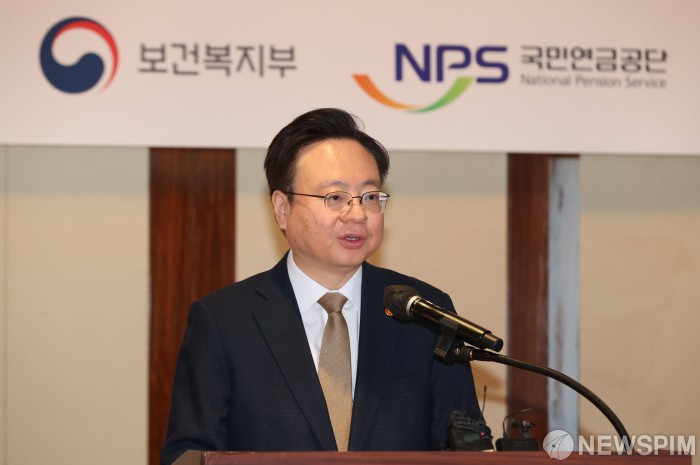 [서울=뉴스핌] 황준선 기자 = 조규홍 보건복지부 장관이 2일 오전 서울 중구 웨스틴조선호텔에서 열린 국민연금기금운용위원회 합동 연찬회에서 인사말을 하고 있다. 2023.02.02 hwang@newspim.com