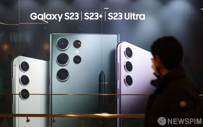 [서울=뉴스핌] 황준선 기자 = 삼성전자가 미국 샌프란시스코에서 '갤럭시 언팩 2023'을 열고 새로운 스마트폰인 '갤럭시 S23' 시리즈를 공개한 2일 오후 서울 서초구 삼성 딜라이트샵에 갤럭시 S23 시리즈 광고물이 게시돼 있다. 갤럭시 S23은 스마트폰 사상 처음으로 2억 화소 카메라를 장착하는 등 카메라 성능이 대폭 강화된 것이 특징으로, 이달 17일에 한국을 포함한 전세계 시장에 순차 출시된다. 2023.02.02 hwang@newspim.com