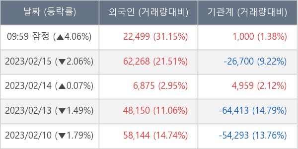 [표] 외국인ㆍ기관 순매매량 (단위 주)