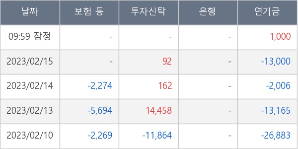※ 사모펀드 등 일부 기관의 순매매량은 표시되지 않음