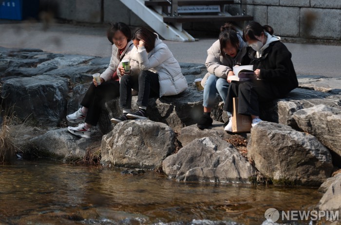 [서울=뉴스핌] 황준선 기자 = 포근하고 화창한 날씨를 보인 23일 오후 서울 중구 청계천을 찾은 시민들이 산책을 하고 있다. 2023.02.23 hwang@newspim.com