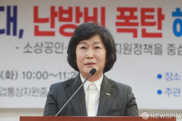 [서울=뉴스핌] 이형석 기자 = 오세희 소상공인연합회장이 28일 오전 서울 여의도 국회 의원회관에서 열린 '난방비 폭탄 해결책은 무엇인가?' 토론회에서 인사말을 하고 있다. 2023.02.28 leehs@newspim.com